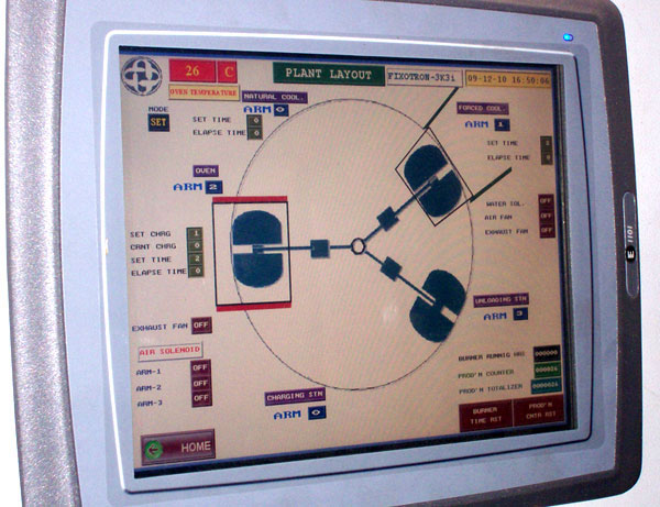 The FixoTron range offers a man machine operator interface, which offers the facility of auto warning maintenance, recipe and production history records, auto audio/video warnings, etc. These machines incorporate various additional features like inert gas injection, high pressure air injection for transvectors, predetermined position stops in the oven for localized heating, and in load/unload station for facilitating the operators, using technology for faster heating and cooling cycles, using minimum floor space, using less manpower, auto production program, auto charging, multi layer parts with up to 5-layer rotomolded parts and a provision for efficient rotomoldin